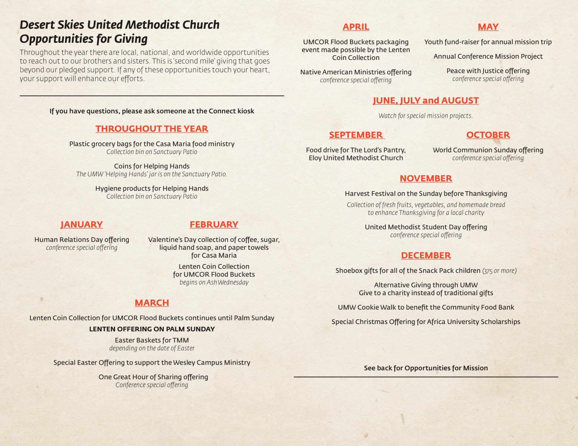 Desert Skies United Methodist Church Giving